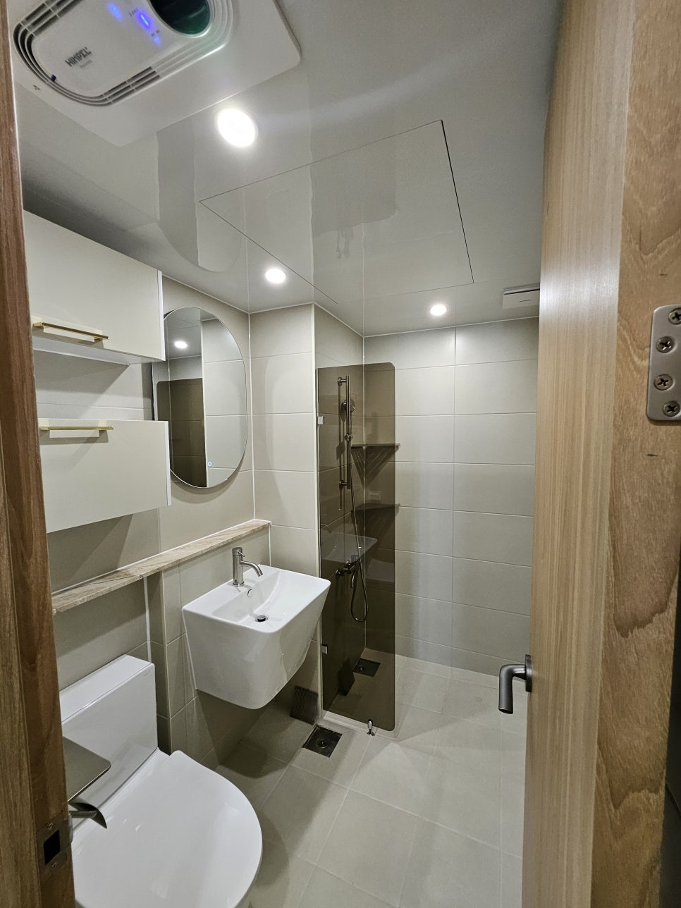 욕실은 전체적으로 그레이베이지톤의 타일로